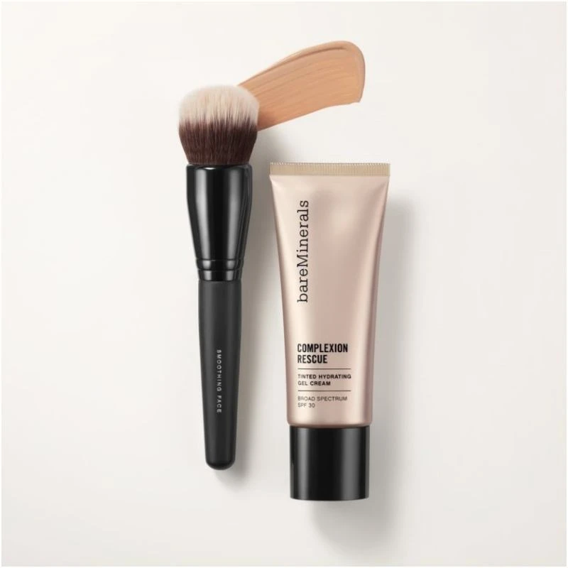 Bare Minerals Smoothing Face Brush er lavet specielt til påføring af Complexion Rescue Tinted Hydrating Gel Cream, men kan også bruges til andre foundations. Den er lavet af syntetiske fibre, og glider blødt over huden for at give en perfekt påføring uden striber.