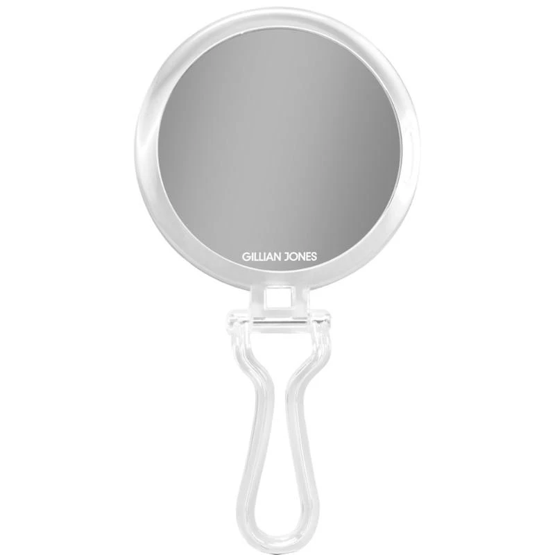 Gillian Jones Multi Mirror x10 Clear er et spejl, der med sit praktiske håndtag kan bruges på flere måder. Ved at trække håndtaget ud kan man bruge den som et håndspejl, og ved at bukke det kan den stå selv, og derved kan man bruge det som et bordspejl når man f.eks. lægger makeup. Derudover kan man også hænge spejlet op på en krog grundet håndtagets smarte design. Rammen omkring spejlet er lavet i slagfast akryl, og der er spejl på begge sider, hvor det ene er almindeligt, og det andet er med 10x forstørrelse.