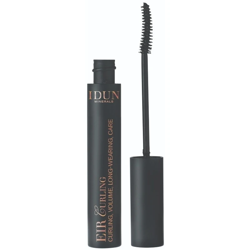 IDUN Minerals Mascara Eir Curling – 007 Black er en sort mascara, der giver maksimal volumen og den smukkeste buede form. Formlen er beriget med E-vitamin, som både plejer og beskytter vipperne, samtidig med at de fremstår på smukkeste vis. Det buede børstehovede gør det nemt at nå alle vipperne, og giver dem et smukt adskilt resultat uden klumper. Alle mascara fra IDUN er oftalmologisk testet, og kan bruges til sensitive øjne og af kontaktlinsebrugere.