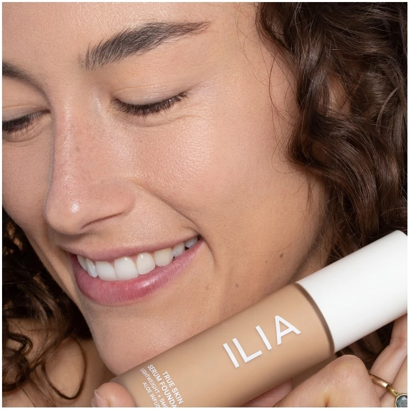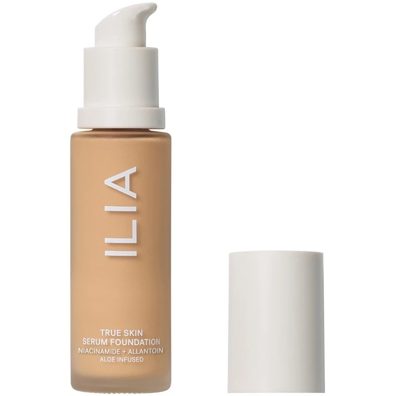 ILIA True Skin Serum Foundation er beriget med niacinamid, aloe vera og allantoin, der er med til at sløre porer, fine linjer og rødme, samt gør huden silkeblød og velfugtet. Huden efterlades med en forbedret og en mere jævn hudtone.