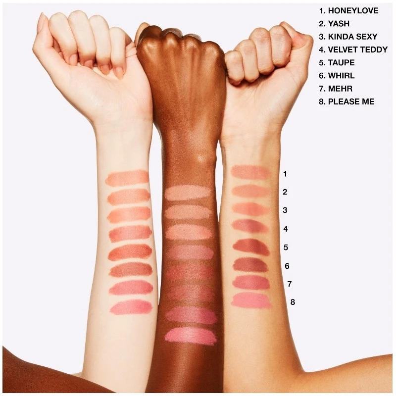 MAC Matte Lipstick – Velvet Teddy er en ikonisk læbestift, der både giver læberne struktur, og efterlader dig med en moderne mat finish. Denne smukke læbestift er rig på pigmenter, som giver et utrolig dybt og intenst look, der holder længe. Produktet er formuleret til at skygge, definere og fremhæve læberne, og den bløde formel der blandt andet består af castorolie, plejer og blødgør læberne, så læbestiften ikke krakelere eller tørre ind.
