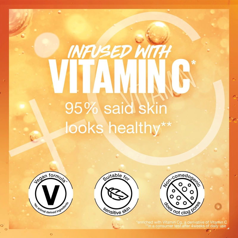 Den let dækkende formel er beriget med vitamin C, der giver din hud en frisk glød, samtidig med at den dækker ujævnheder og rødme til perfektion.