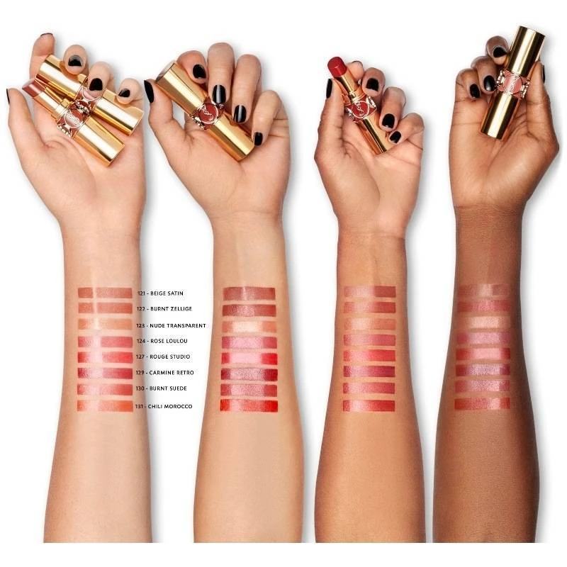 YSL Rouge Volupté Shine – 124 Rose Loulou er en luksuriøs og plejende læbestift med medium dækning, der giver læberne en smuk farve, samt en strålende glans. Denne læbestift har en utroligt lækker og fugtgivende konsistens, og med et indhold på hele 65% plejende olier, giver den ultimativ pleje til dine læber. Ligeledes indeholder den antioxidanter fra granatæbleekstrakt, mens macadamia nøddesmør og mango bidrager med en plejende virkning.